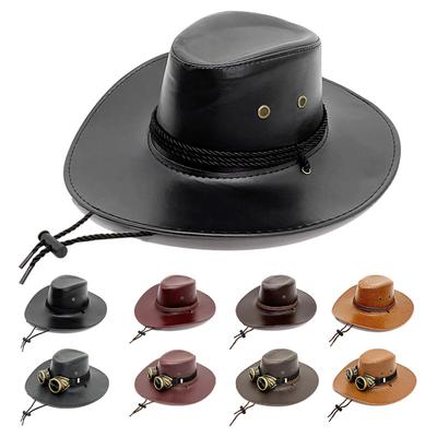 Western Pu Leather Cowboy Hat Men'S Big Brim Jazz Hat Women'S Outdoor Outing Shading Knight Hat