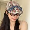 Denim Bow Strapped Plaid Forward Hat Fashionable Face Small Versatile Street Painter Newsboy Hat