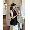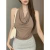 Spring and Summer Women's New Sleeveless Neck Fashion Round Neck Pleated Top