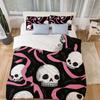 Sugar Skull Bedding Set Queen Skeleton Duvet Cover for Boys Girls Teens Pink Bowknot Comforter Cover Halloween Theme Quilt Cover