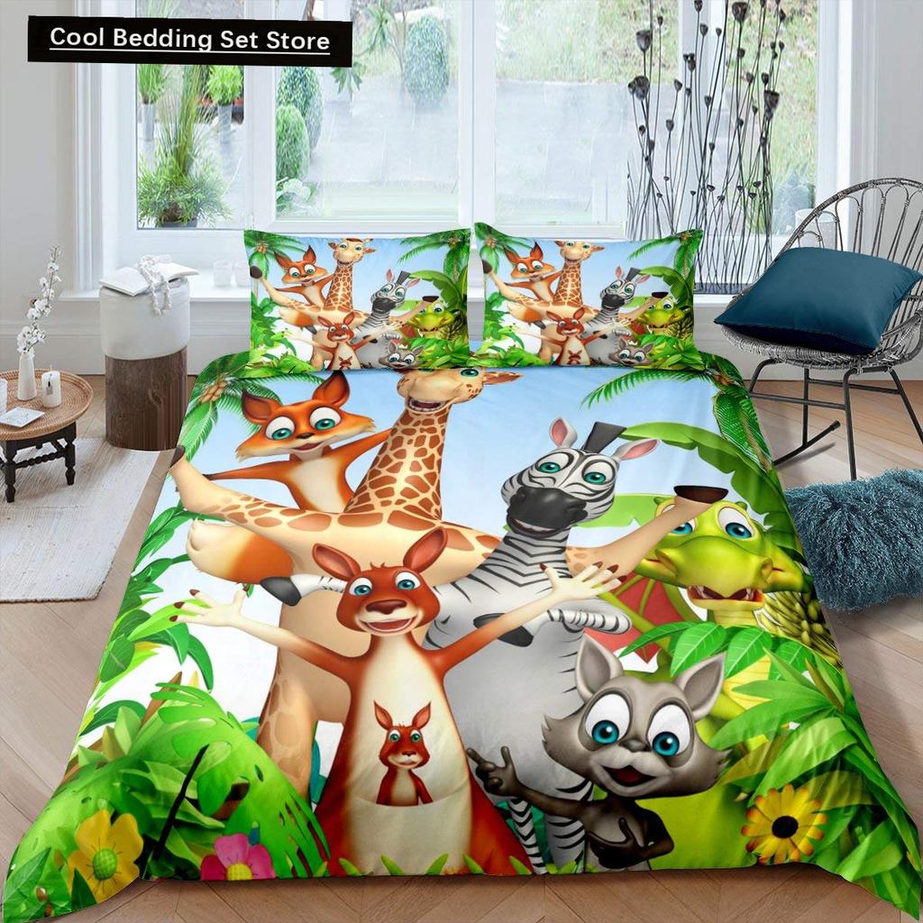 Kids Cartoon Animal Zebra Giraffe Fox Kangaroo King Queen Duvet Cover Boy Girl Rabbit Wildlife Bedding Set Polyester Quilt Cover
