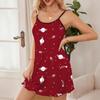 Yeni Seksi Baskılı Süt İpek Yelek Kadın Pijama Askılı Elbise Ev Giyim