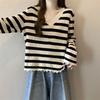 Autumn and Winter Women's Striped Long-sleeved V-neck Bottoming Pullover Loose Casual Knitwear