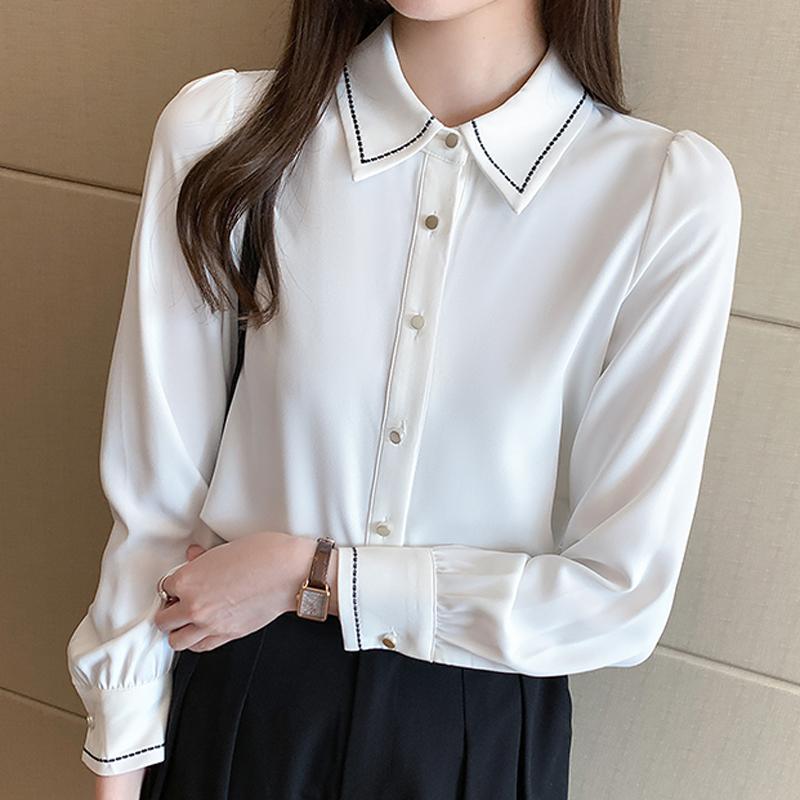 Kadın Bluzlar Gömlekler 2025 Bahar Uzun Kollu Kadın Bluz Gömlek Turn Down Yaka Ofis Bayan Siyah Beyaz Şifon Bluz Gömlek Kadın Üstler J863