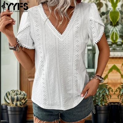 YYFS Kadın Modası Günlük Yaz İlkbahar Düz Renkli Baskı Kısa Kollu O-Boyun Bluzlar ve Gömlekler
