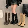 Women's Boots 2024 Winter New Round Toe 43 Size Fashion Raised Suede Trendy Long Tube Boots Anti Slip Leather Boots Botas Mujer