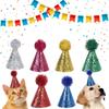 Evcil Hayvan Doğum Günü Şapkası Tül Simli Doğum Günü Koni Evcil Hayvan Kafa Bandı Başlık Köpekler Kediler İçin Parti Kostümü Saç Aksesuarları Mavi Pembe Kırmızı