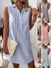 Spring Summer Women's Sleeveless Striped Lace Up Casual Dresses