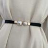 Elegant Double Pearls Buckle Elastic Women Belts Thin Straps Lady Girl Dress Skirt Decor Waistbands Trouser Dress Decoration