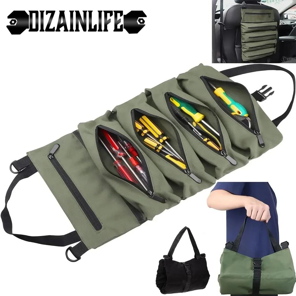 Alet Rulosu, Çok Amaçlı Rulo Alet Çantası, Anahtar Rulosu, Kanvas Alet Düzenleyici Kova, Araba İlk Yardım Çantası Sarma Rulo Saklama Kutusu