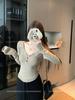 V-neck button design pure desire long-sleeved bottoming shirt for women early autumn gray slim waist T-shirt gentle wind top