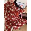 2colors Christmas Lovers Simple Plaid Thicken Stripe Couple Long Sleeve Pajama Set Women Loose Winter Vintage Sleepwear