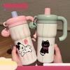 Kitten High Appearance Level Thermos Cup Girls Simple Straw Water Cup Portable Stainless Steel Handy Cup Cup