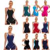 Kadın Kolsuz Muhafazakar Tek Parça Seksi Sırtı Açık Dalgıç Elbisesi Göğüs Pedi Renk Eşleşen Boksör Mayo