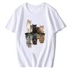 Yaz 3D Dijital Baskılı Üç Kedi Yansıması File Nefes Alabilir Kısa Kollu Kapüşonlu Yuvarlak Yaka Bol Tişört Kadın
