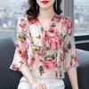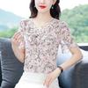 Yaz Modası Çok Yönlü V Yaka Baskılı Bol Kesim Üst Kadınsı Mizaç Fırfırlı Kısa Kollu Şifon Gömlek Bluzlar & Gömlekler