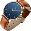Minimalist Şık Basit Analog Tarih Göstergesi Deri Kayış Turuncu Siyah Mavi Erkek Mavi, Turuncu-P,