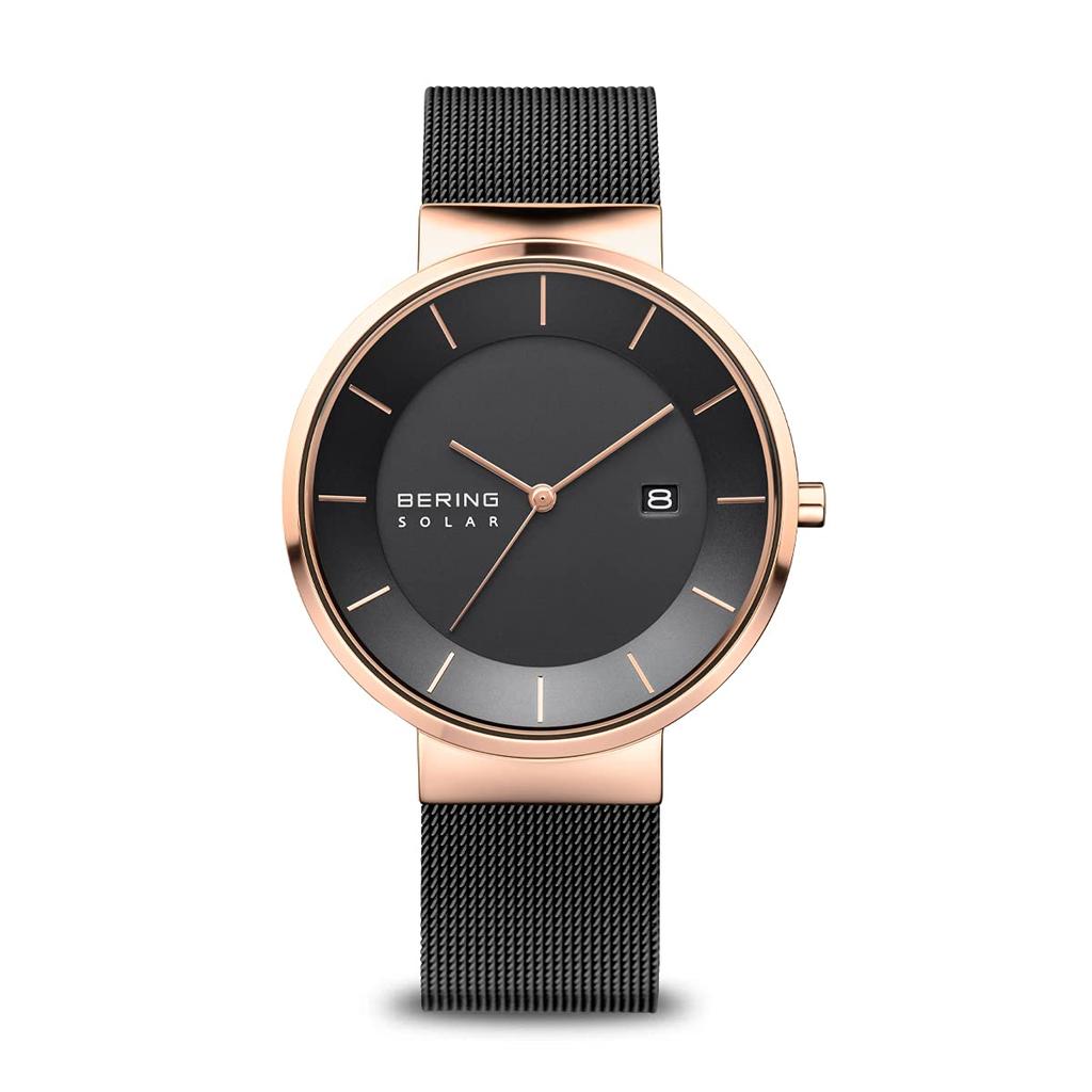 BERING Solar Black x Rose Gold Stainless Steel Mesh Strap Sapphire Glass Genuine Imported Product 3 Year Warranty Scratch Resistant Break Resistant