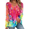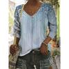 Women's Fashion V-neck Long Sleeved T-shirt Vintage 3d Printed Top