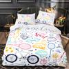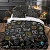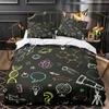 Sports Graffiti King Queen Duvet Cover Cartoon Bicycle Badminton Racket Bedding Set for Kids Black 2/3pcs Polyester Quilt Cover