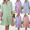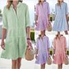 Kadın Elbiseleri Günlük Uzun Kollu Çizgili Baskılı Yakalı Gömlek Elbise Moda Parti Elbisesi
