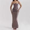 Halter Seksi Sırtı Açık Sıkı Mizaç Belli Pileli Uzun Elbiseler