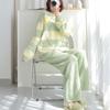 Green Stripe Pajamas Women's Autumn and Winter Home Clothes Coral Fleece Thickened Outwear Suit You Can Wear It on The Street.