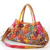Dış ticaret kadın çantası dana derisi çiçek renk uyumlu omuz postacı çantası hakiki deri kadın çantası