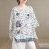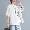 Çin Kadın Çin Tarzı Tişört Uzun Kollu Bol Pamuk Kısa Kollu Yaz Bluz Etnik Stil
