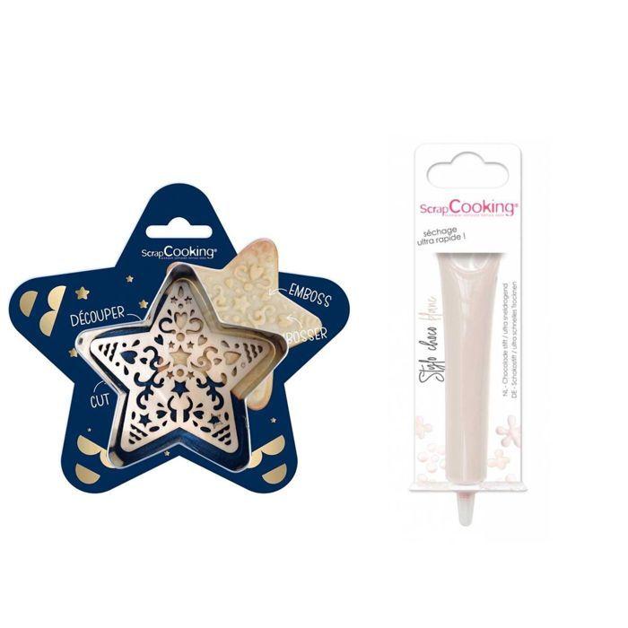 Kit pour biscuit en relief Étoile + Stylo au chocolat blanc