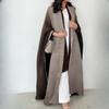 Wrinkled Women's Windbreaker Jacket Bat Sleeve Scarf Collar, Gradient Long Robe Fashion Retro Coats and Jackets Women