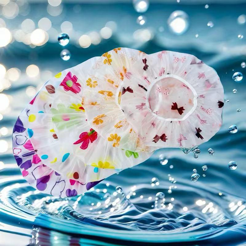 "Assorted PE Shower and Hair Care Caps for Children, Girls, Adults"
