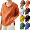 İlkbahar ve Yaz V Yaka Pamuk ve Keten Yüzde Düz Renkli Büyük Beden Bol Orta Kollu Kadın Gömleği
