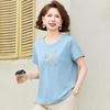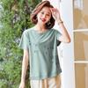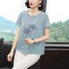Kadın İlkbahar ve Yaz Büyük Beden Düz Renk Yuvarlak Yaka Yarım Kollu Baskılı Kısa Kollu Nefes Alabilir Rahat Gömlek
