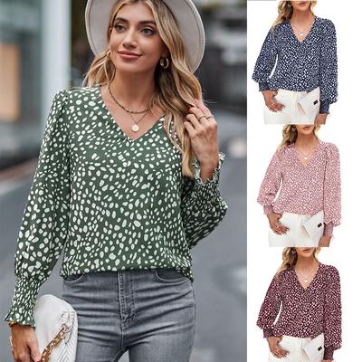 2023 Casual Gevşek Bayan Uzun Kollu V Yaka Bayan Gömlek Tops Moda Çiçek Şifon Bluz Kadın Ruffles Giysileri 28421