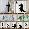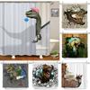 Funny Dinosaur Shower Curtain Bathroom Dino Cool for Kids Boys Silhouette Animal Shadow Cartoon White Fabric Bath Home Decor