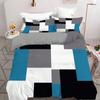 Mavi Çizgili Ekose Stil Nevresim Takımı Modern Geometri Yorgan Kılıfı Yastık Kılıflı Yatak Takımı 3 Parça Çocuk Erkek Odası Dekoru