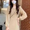 Kadın İlkbahar Fransız Stili Retro V Yaka Askılı Bel Daraltan Kaliteli Fitilli Kadife Elbise