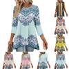 Kadınlar İçin 3/4 Kollu Tunik Üstler Baskılı Günlük Hafta Sonu Bol Kesim Moda Temel Yuvarlak Yaka Tişört