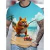 Erkek Komik Kedi ve Köpekbalığı Tişört Üstler 3D Baskı Kısa Kollu Bisiklet Yaka Hayvan Tişörtleri Yeni Büyük Beden Tişörtler Giyim