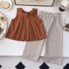 Çocuk Takımları Ekose Baskılı Kolsuz Geniş Paça Pantolon Şort Kız Çocuk Kıyafeti
