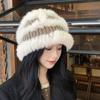 Tavşan kürkü örme kova şapka kadın kış 2023 yeni peluş kalınlaştırılmış termal havza şapka küçük yüz kürk şapka gösteriyor