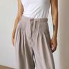 Bol Dökümlü Günlük Pantolonlar İpli Elastik Yüksek Bel Bol Kesim Konturlu Slim İş Stili Geniş Paça Pantolon
