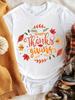 Thanksgiving text, gratitude, pure women's T-shirt, casual, short sleeves, crew neck T-shirt, women's clothing, loose, clothing, comfort, pure