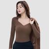 "Hyaluronik Asit İçeren Dikişsiz V Yaka Uzun Kollu Göğüs Pedli Tişört"