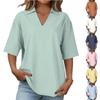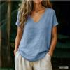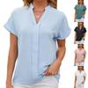 İlkbahar ve Yaz Yeni V Yaka Kısa Kollu Bol Düz Renk Üst Gömlek Kadın Bluzları & Gömlekleri