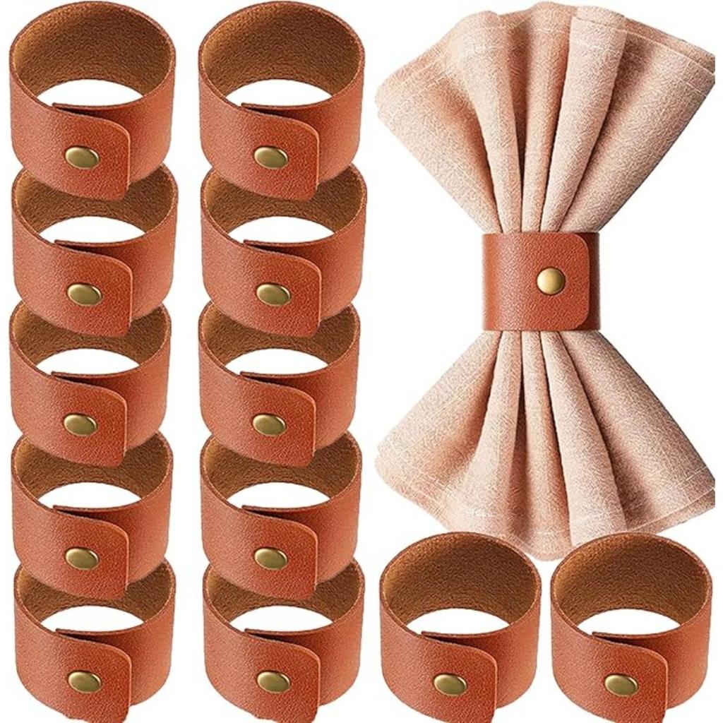 12 ADET Deri Peçete Halkası Vintage Tokalı Peçete Tutucu Masa Dekorasyonu için, Düğün Masa Peçete Halkası Süsleri Klasik Kahverengi Deri Peçete Halkaları
