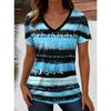 Summer Women's Striped Printed Short Sleeved Casual V-neck T-shirt Pullover Top
