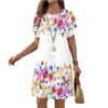 Renkli Çiçek Baskılı Mini Elbise 6XL Büyük Beden Kadın Kısa Kollu O Yaka Günlük A Kesim Elbise Yaz Yeni Kadın Elbisesi