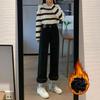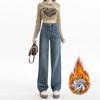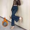 Elevate your autumn and winter wardrobe with these stylish high-waist wide-leg jeans, crafted from premium cotton denim and velvet for a unique blend of warmth and comfort. Featuring a flattering high waistline, these jeans offer a slim fit that complements your silhouette while providing ample room for movement. Designed with a sportive flair, they are perfect for both casual outings and more polished looks. Embrace the cozy, chic elegance of these versatile jeans as a staple for cooler seasons.
